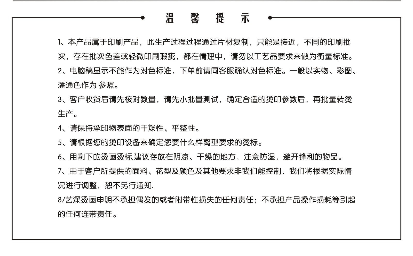 | 熱轉印條件 | 溫度:130-150度,時間:6-12秒/次,壓力:0.24 kgf/cm^2以上 |