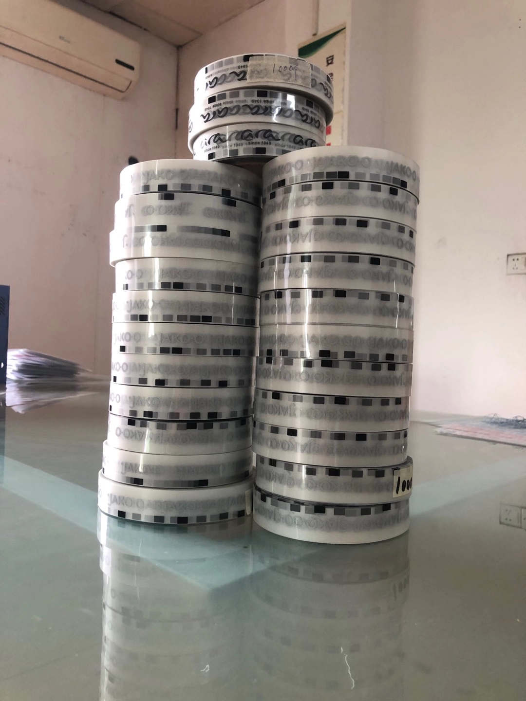 6、產(chǎn)品規(guī)格: 隨機(jī)定制,寬度根據(jù)燙機(jī)確定,長(zhǎng)200-300米/卷。一卷燙標(biāo)一般1500-3000枚。